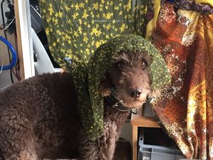 Meine Locken sind sehr praktisch wenn es kalt ist, oder wenn irgendwelche Kleininsekten versuchen mir in die Haut zu beißen. Aber sie sind extrem hinderlich, wenn es heiß wird. Und so hat unterwegs der Hundesalon Metzmeier für seinen einzigen Kunden die Tore geöffnet und mich von der Wolle befreit. (Zum Video geht´s hier.) Das hat ewig gedauert und danach war ich total wuschig und musste erst mal wild herumrennen.