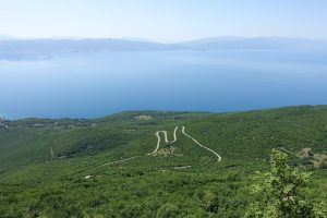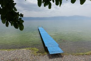 23.12: Wegweisende Schriftzeichen am Oridsee in Mazedonien